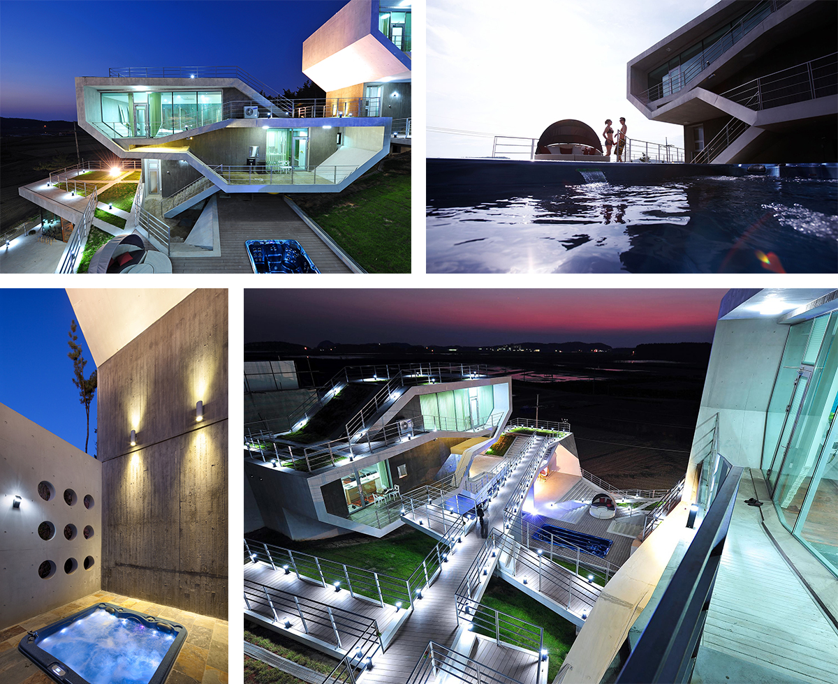 약433㎡ 규모로 지어진 이곳은 창의적인 아이디어가 돋보이는 건축물로 마치 종이를 접어 놓은 듯 직선의 아름다운 표현하였습니다.
